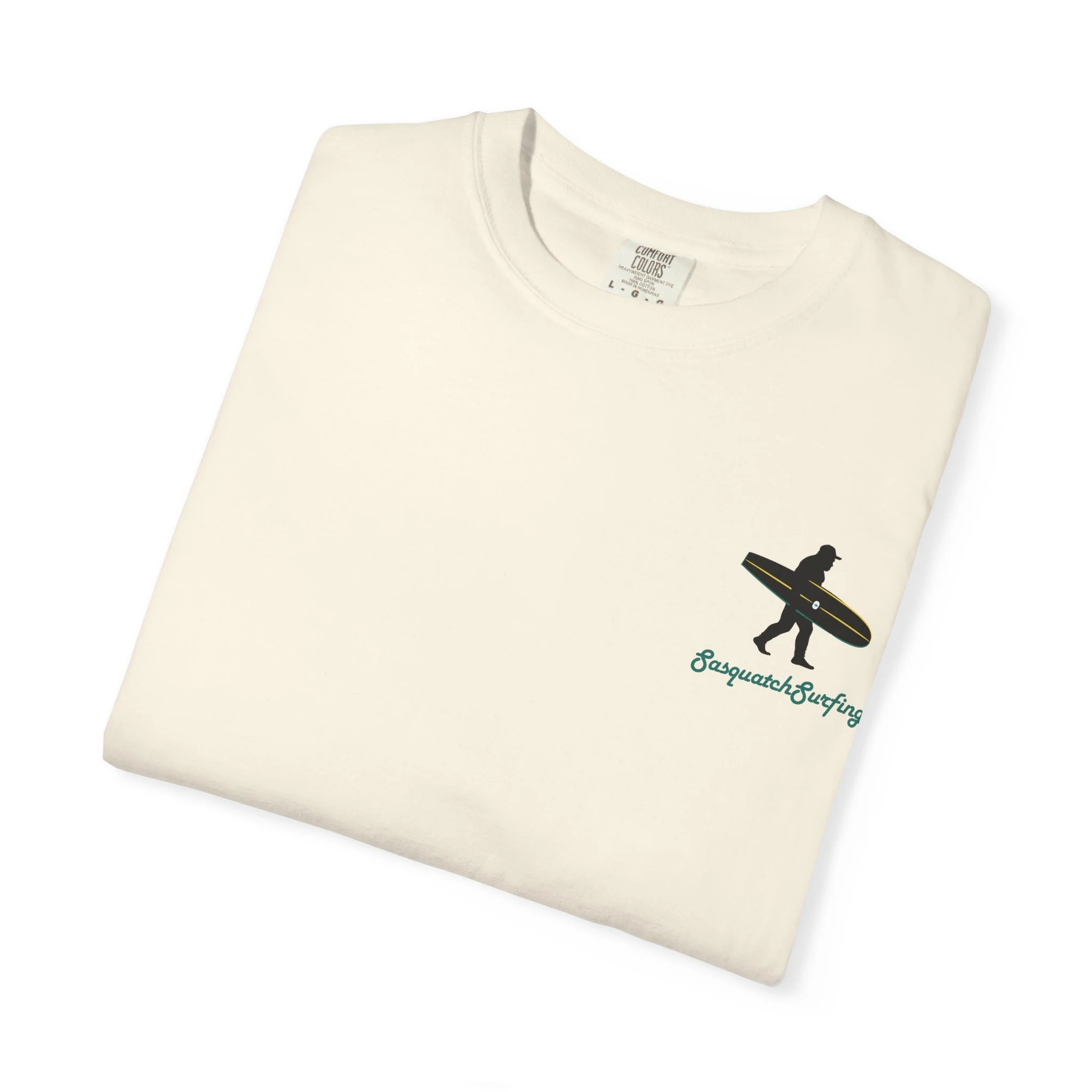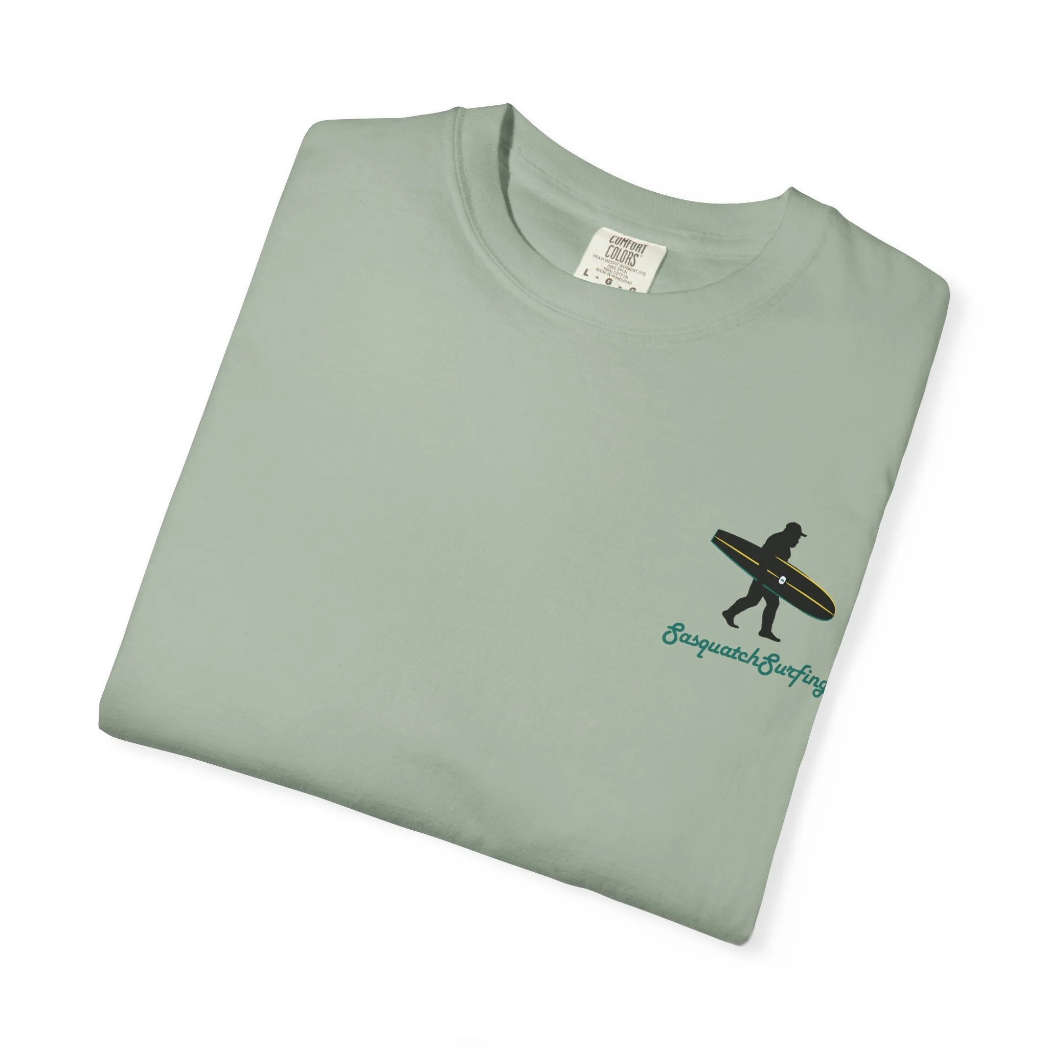 The legend begins here. Our very first drop, First Sighting, marks the moment Sasquatch hit the waves. Printed on a heavyweight Comfort Colors® tee in the washed-out ocean tone “Bay”, this shirt carries that lived-in, sun-faded look from day one.